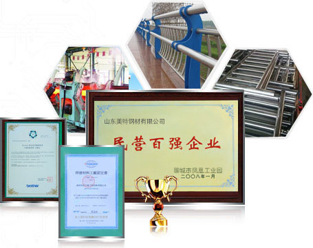 山東美特鋼材有限公司(15863566668)是常年專業(yè)從事生產(chǎn)、銷售內(nèi)外襯不銹鋼復(fù)合管,不銹鋼復(fù)合管護(hù)欄的廠家,公司擁有完整的不銹鋼及不銹鋼復(fù)合管生產(chǎn)線24條,以及各類金屬加工設(shè)備多套(數(shù)控等離子切割機(jī)、沖床、冼床等),公司還擁有獨(dú)立的鍍鋅和噴塑車間,良好地處理好鋼板表面效果。 公司優(yōu)勢(shì):一、專業(yè)性強(qiáng)1.專業(yè)設(shè)計(jì)、制作和安裝不銹鋼復(fù)合管工程及金屬欄桿工程。集設(shè)計(jì)、生產(chǎn)、銷售與安裝為一體的完整體系。2.專業(yè)應(yīng)于:橋梁欄桿、市政建設(shè)、景觀護(hù)欄、體育器材、車輛機(jī)構(gòu)、紡織機(jī)械、醫(yī)療設(shè)備等二、質(zhì)量過硬1.通過IS09001:2000質(zhì)量體系認(rèn)證2. 獲得“全國質(zhì)量、服務(wù)、信譽(yù)AAAA及”企業(yè)稱號(hào),“中國綠色環(huán)保建材產(chǎn)品”,“中國優(yōu)質(zhì)建材產(chǎn)品”…